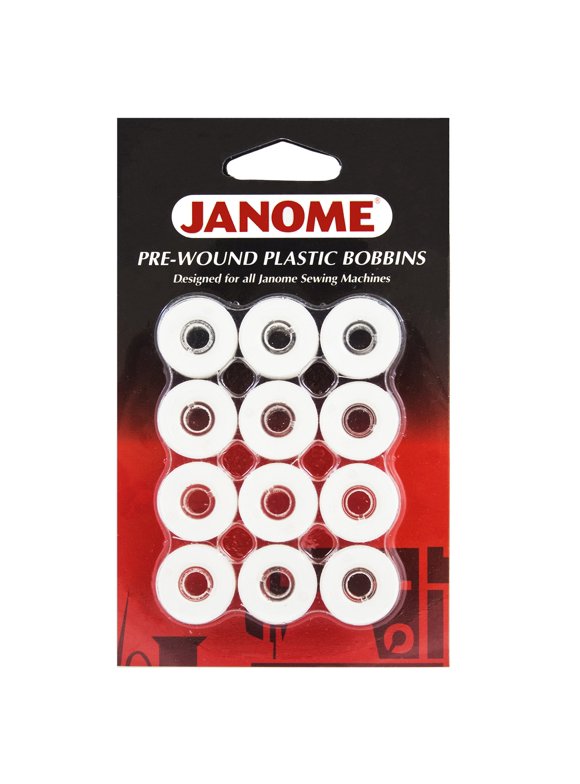Janome Class 15 Pre Wound 12 Pack Of Plastic Bobbins Black White